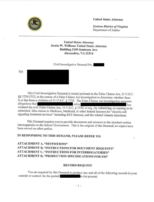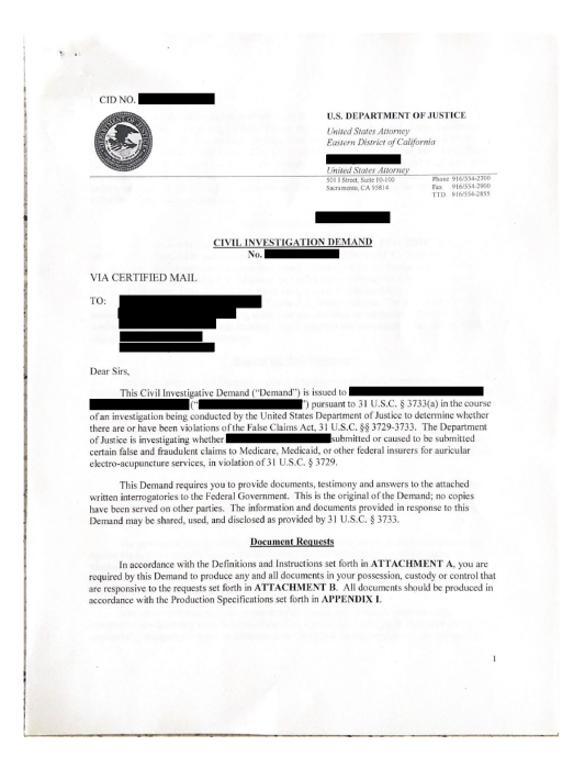 Q: Why would I receive a civil investigative demand if I am not being targeted in a government investigation?