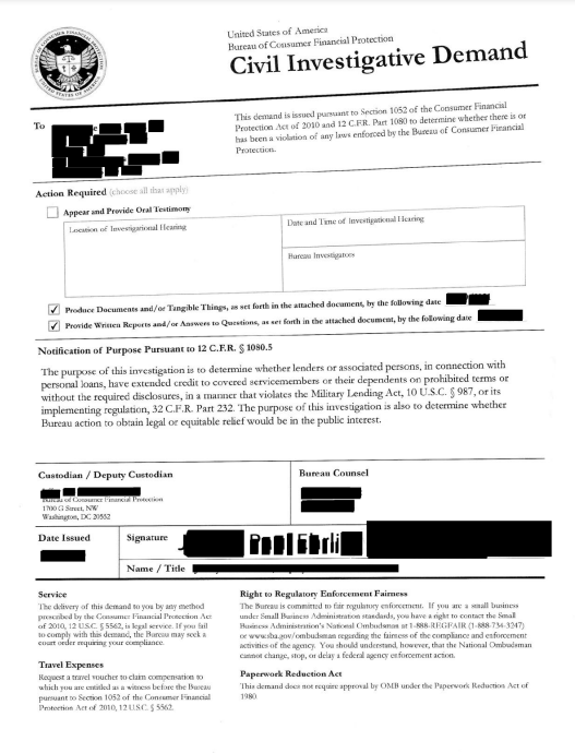 Understanding What to Do When You Receive a CFPB CID, Audit or Subpoena